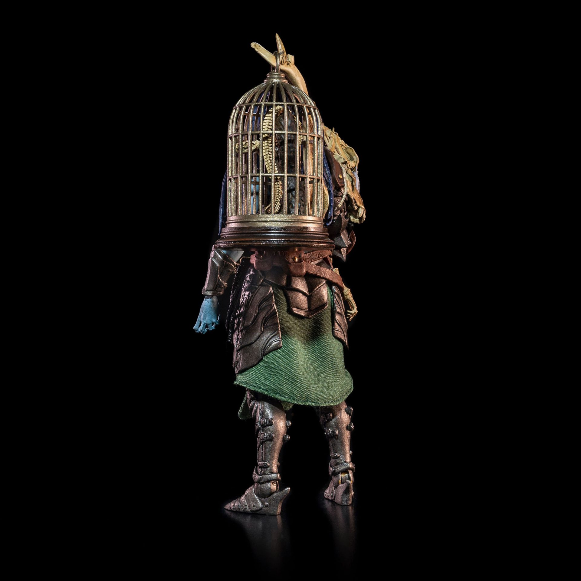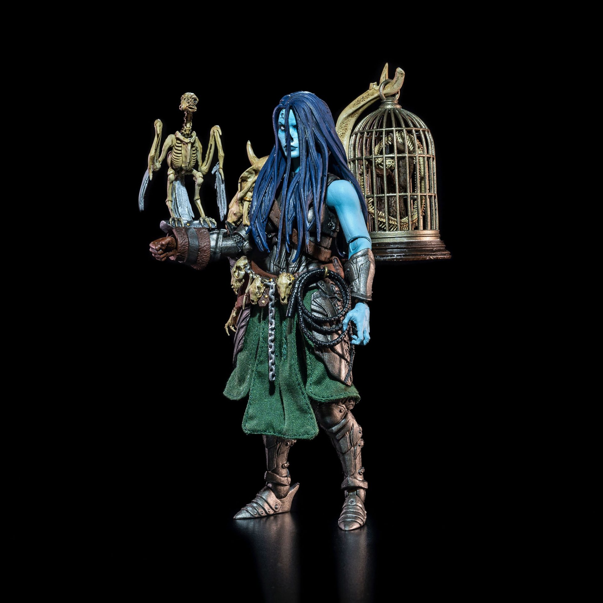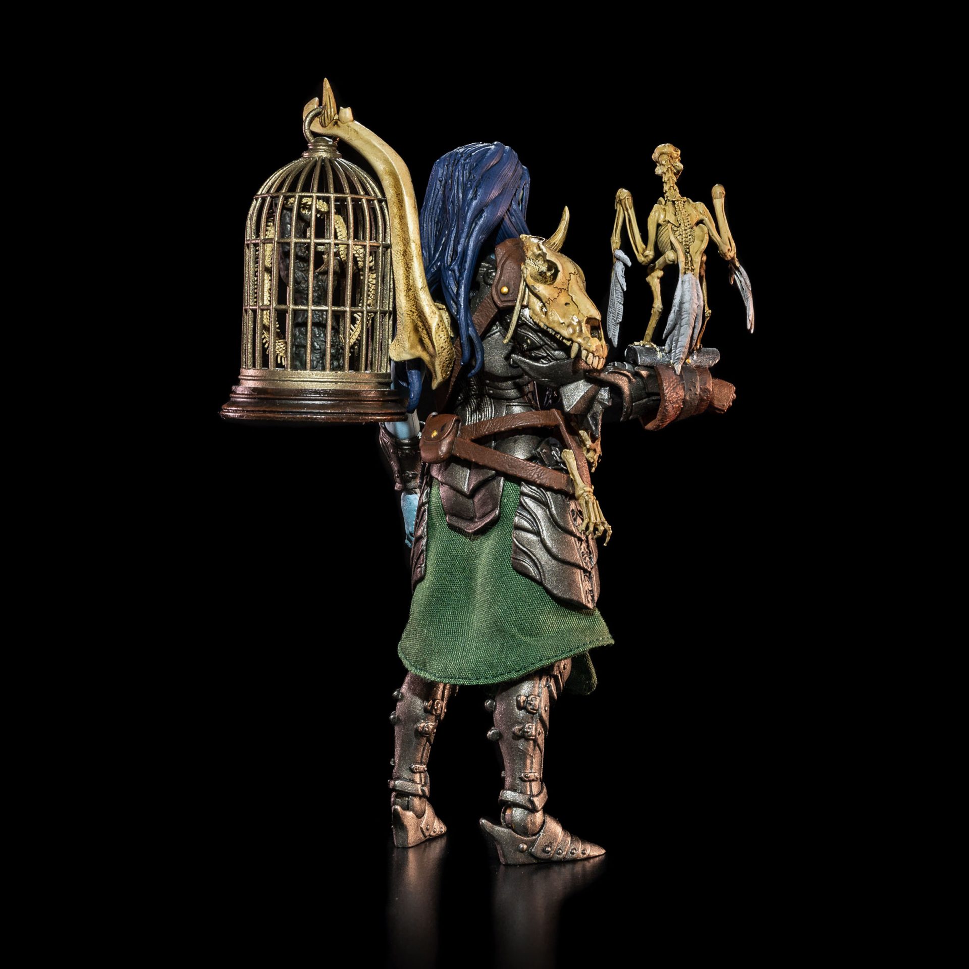 Accessories: Skeleton chimera, bird on wrist guard, caged serpent, bone-handled knife