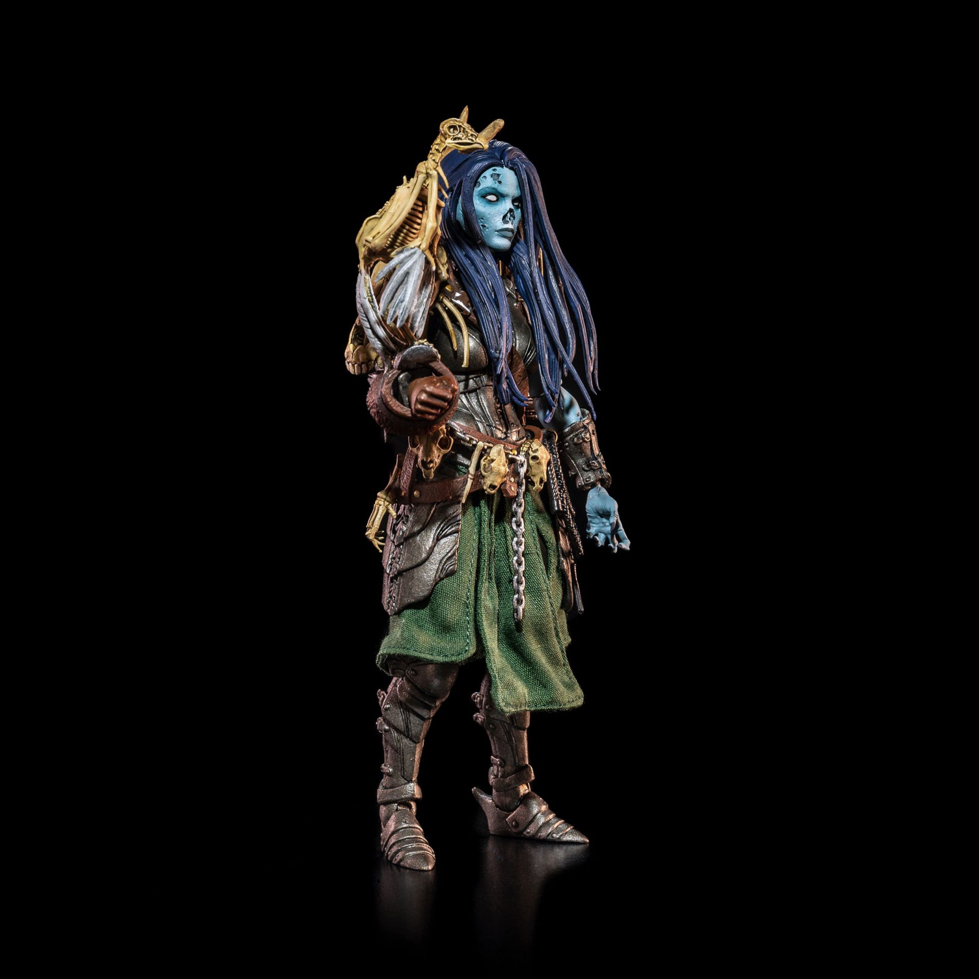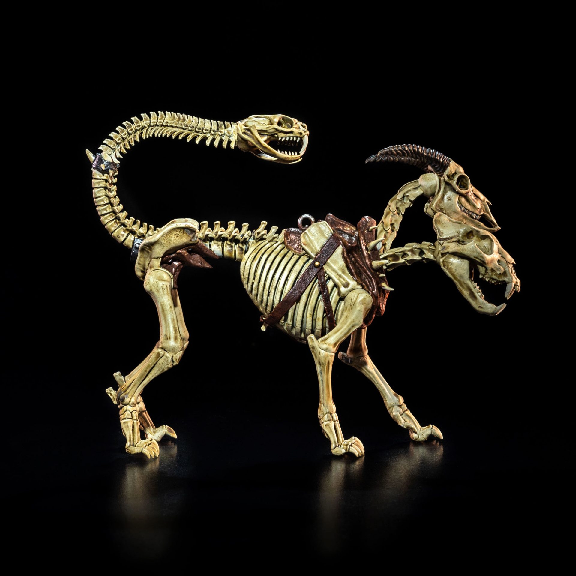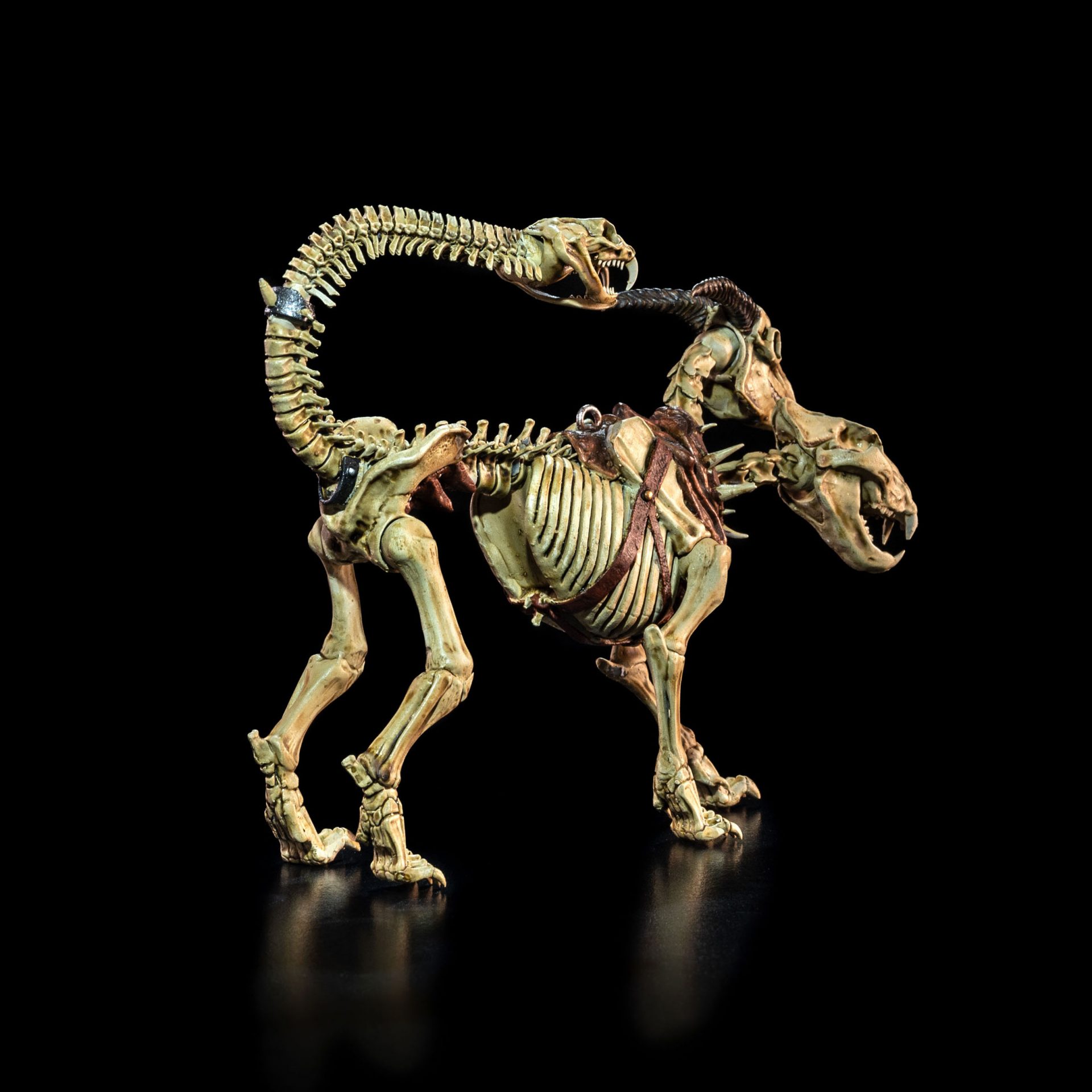 Accessories: Skeleton chimera, bird on wrist guard, caged serpent, bone-handled knife