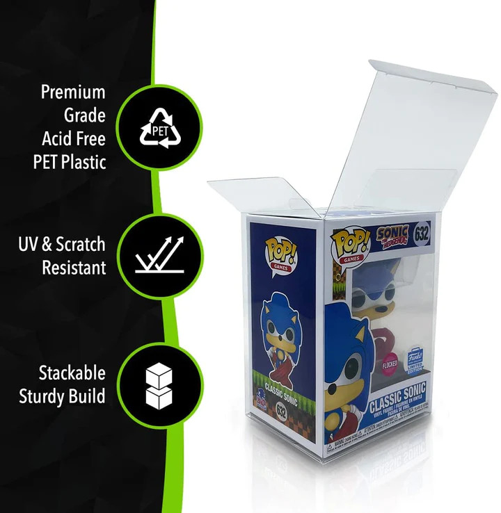 Stackable, Safe & Secure: Featuring a secure locking lid. Our 4″ Inch Funko POP! Protectors are made with Ultra-strong & Scratch Resistant Crystal-Clear PET Plastic. Elevate your Funko Pop Display with our best selling soft Funko POP! Protectors.