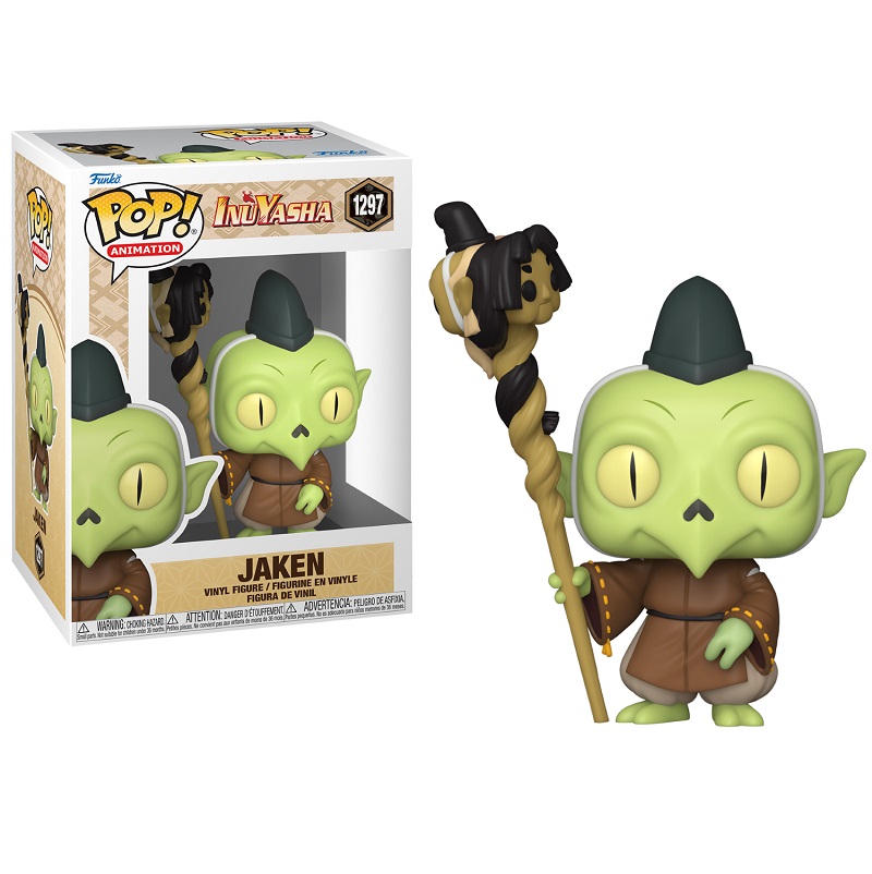 Official InuYasha Jaken 1297 Funko Pop! Animation vinyl figure. Features Jaken with his Staff of Two Heads and signature robes. Stands approx. 3.75 inches tall.