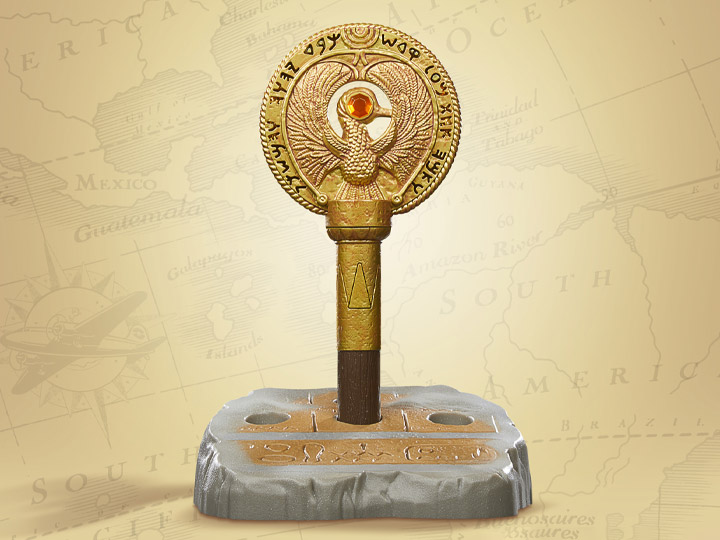 Fans and collectors can imagine the heart-stopping action and adventure of Indiana Jones with the Indiana Jones Adventure Series! With exquisite features and decoration, this series unearths the quality and realism that Indiana Jones devotees love. The Adventure Series includes figures and roleplay items from the 40-plus-year legacy of the adventures of Indiana Jones. (Each sold separately. Subject to availability.) This Adventure Series Staff of Ra Headpiece electronic collectible roleplay talisman is designed to look like the fabled medallion featured in Indiana Jones and the Raiders of the Lost Ark. The removable headpiece, featuring a premium metallic look and feel, is great for on-the-go Indiana Jones cosplay and makes a great addition to any Indiana Jones costume. Makes a great Indiana Jones gift. If adventure has a name, it must be Indiana Jones!