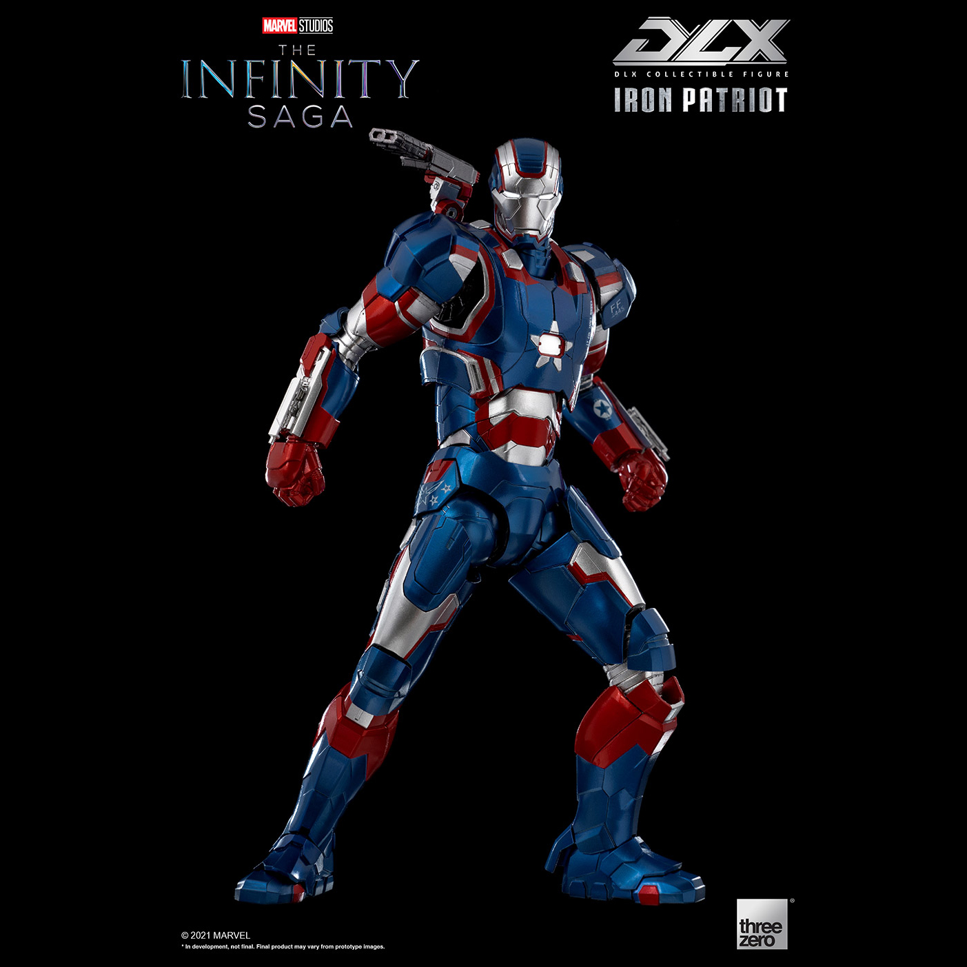 threezero’s popular new DLX series based on characters from Marvel Studios’ The Infinity Saga continues with the DLX Iron Patriot as our next release. This fully-articulated collectible figure stands at 6.9” (~17.5cm) tall and is constructed of threezero’s renowned DLX die-cast system with over 48 points of articulation.