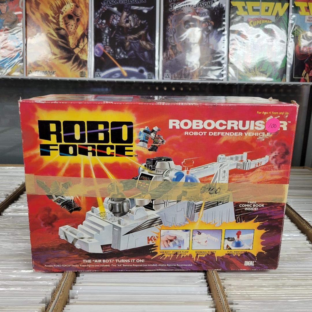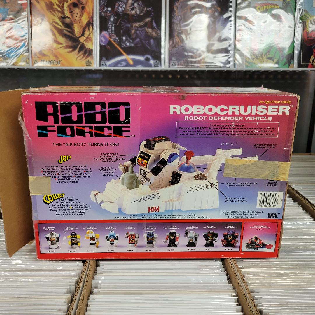 Robo Force Robocruiser MIB- LOOKS TO BE COMPLETE WITH UNUSED STICKER SHEET AND INSERT. Box does  show wear and has masking tape on the box.