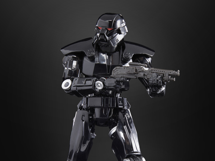 Hulking Imperial combat droids with gleaming black armor and powerful jet boots, the Dark Troopers are a powerful design.