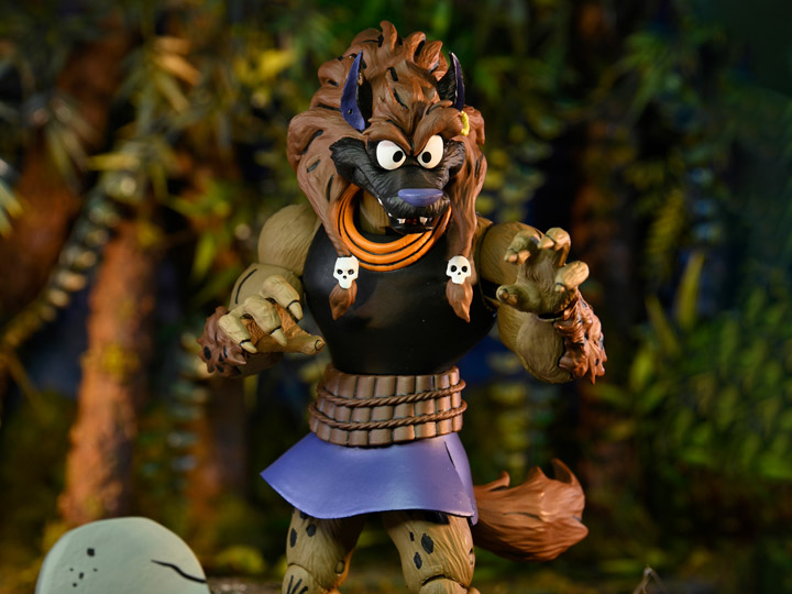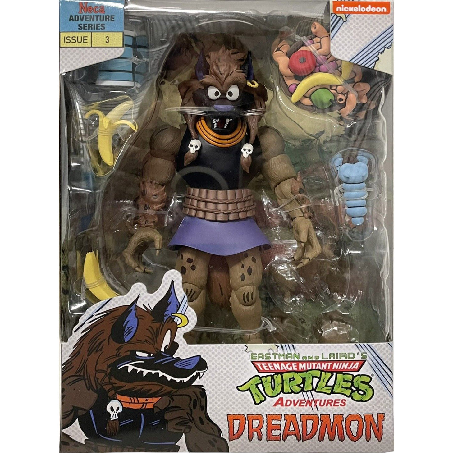 It’s an action figure first! This new action figure from NECA is straight from the pages of Eastman and Laird’s Teenage Mutant Ninja Turtles Adventures comic book series from Archie Comics! One of the strongest Mutanimals, Dreadmon gained his power of super speed from a mysterious talisman… which eventually also robbed him of his human form. This 7″ scale figure is detailed as depicted in the comics, and includes interchangeable eyes, extra hands, bowl of guts, tombstone, and bananas. Comes in collector-friendly window box packaging featuring all new illustrations by comic book artists Ken Mitchroney and Gary Fields.
