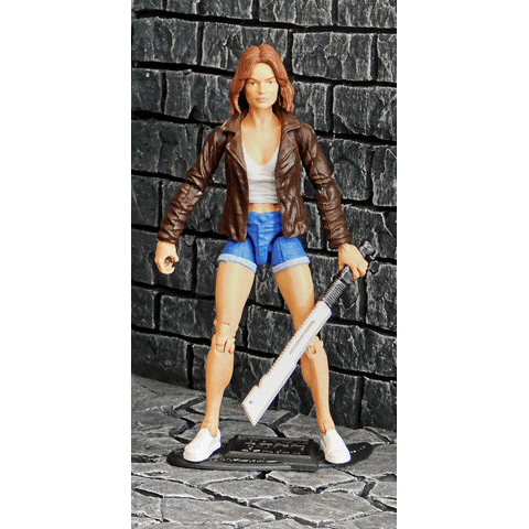 Perfect for fighting all your zombies, this amazing carded figure comes with her ultimate weapon for fighting the undead, extra hands, and a stand for display.